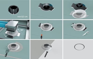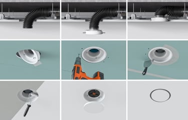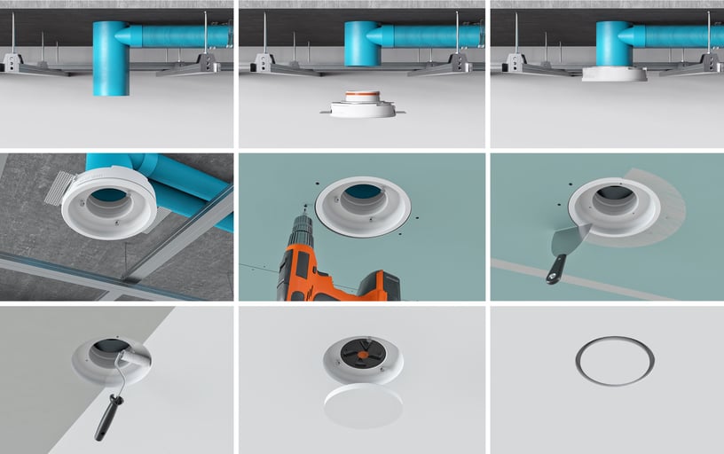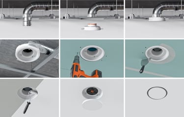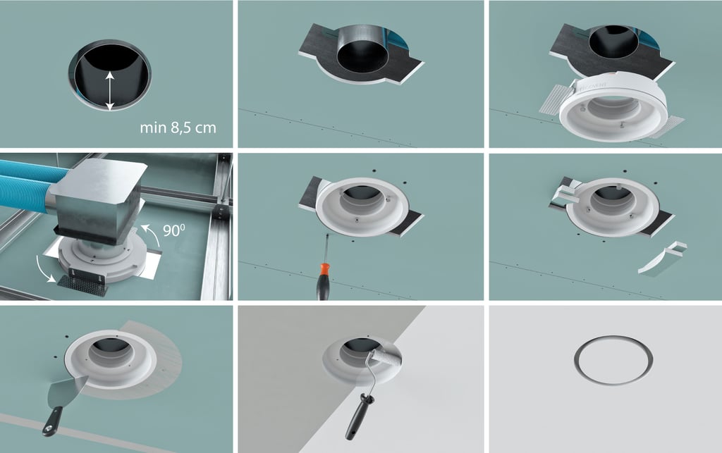 Se il controsoffitto è già esistente e i condotti di ventilazione sono stati tagliati a filo della superficie in cartongesso, installare il diffusore ERGOVENT come segue:
