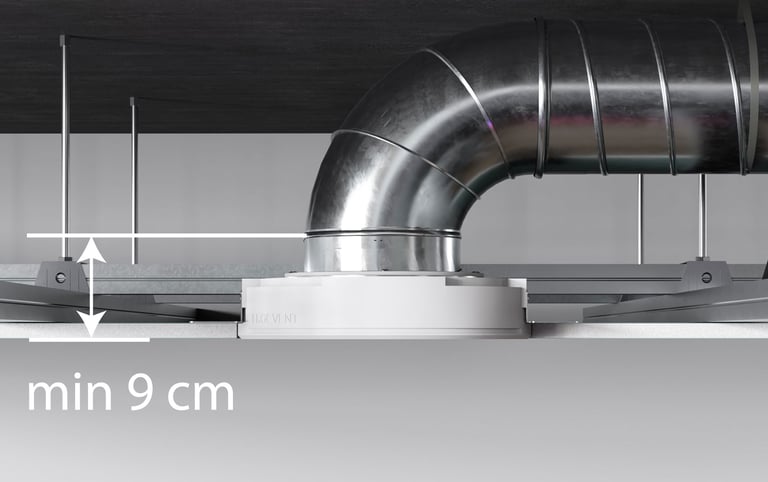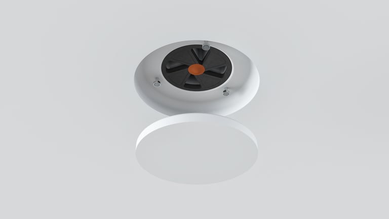 I diffusori ERGOVENT possono aiutare a nascondere i sistemi di climatizzazione quando utilizzati con unità fan-coil. Le velocità del vento sono più basse, rendendo il climatizzatore più silenzioso e l'aria viene distribuita in modo più uniforme nella stanza quando i modelli RONDO sono posizionati in diversi angoli della stanza.