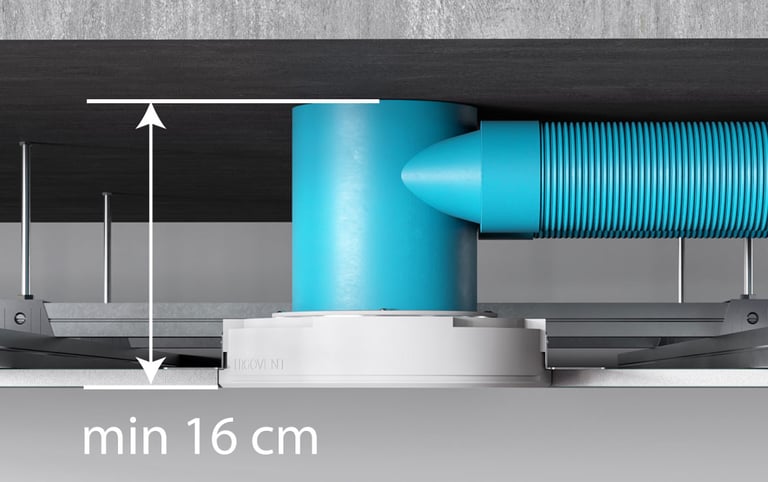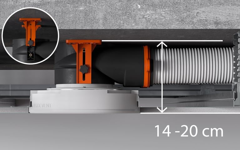 Se nel sistema di ventilazione vengono utilizzati condotti flessibili in plastica (diametro 75 mm), i diffusori vengono collegati tramite apposito plenum.